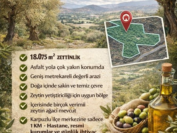 AYDIN, Çine🏡 Karpuzlu Merkezine Çok Yakın, Yatırım ve Tarıma Uygun 18.075 m² Zeytinlik 💰 Fiyat...
