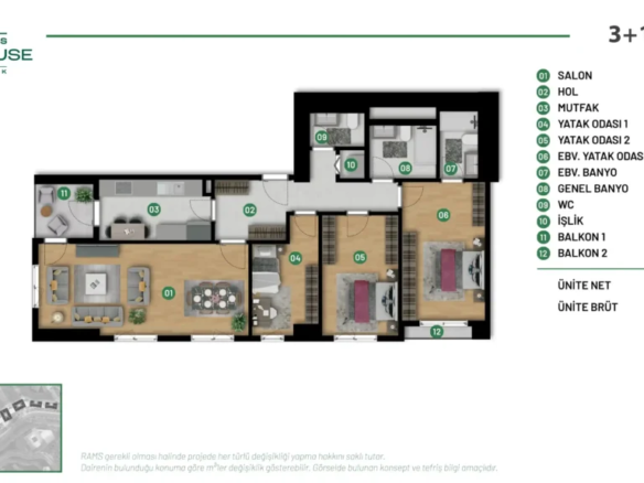 - Yatak Odası 1+1’den 4+1’e