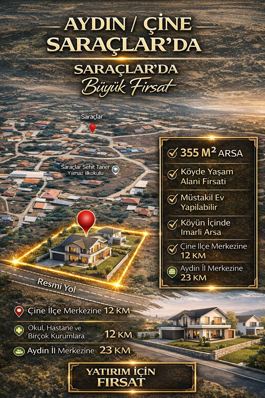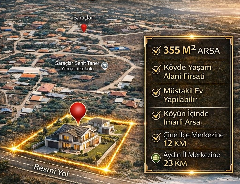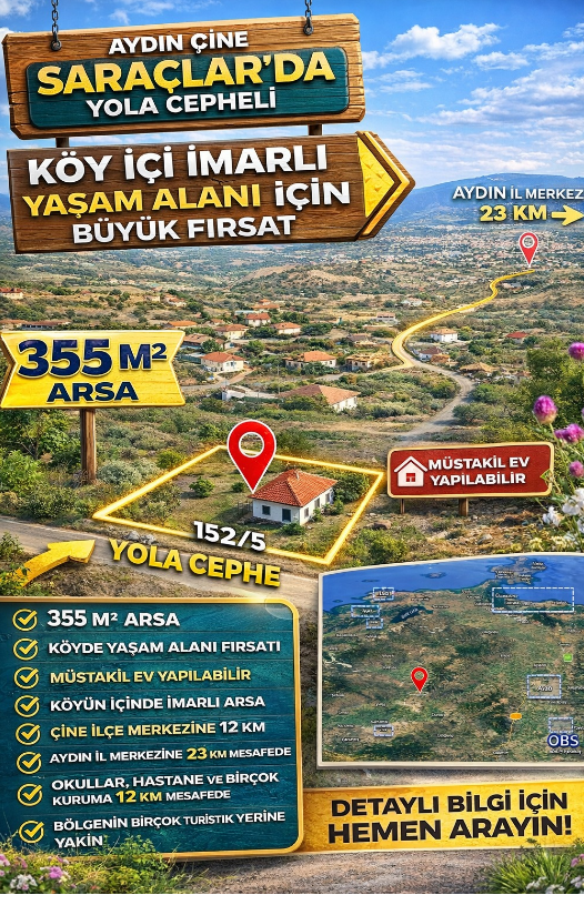 🏡 Aydın Çine Saraçlar’da Satılık İmarlı Arsa | 355 m² | Yola Cepheli | Köy İçi Yaşam Fırsatı