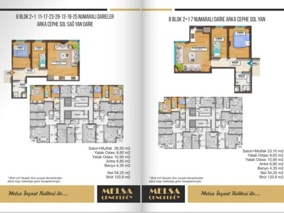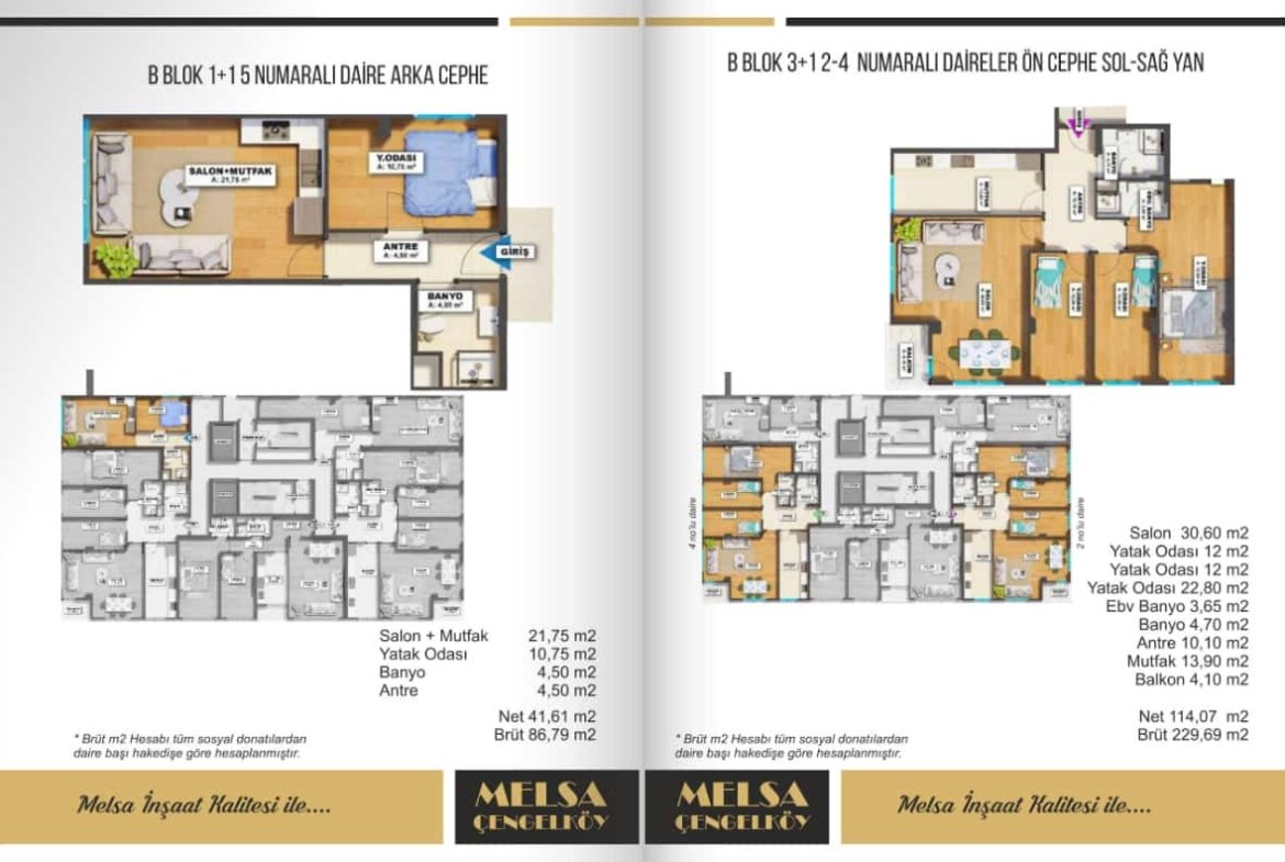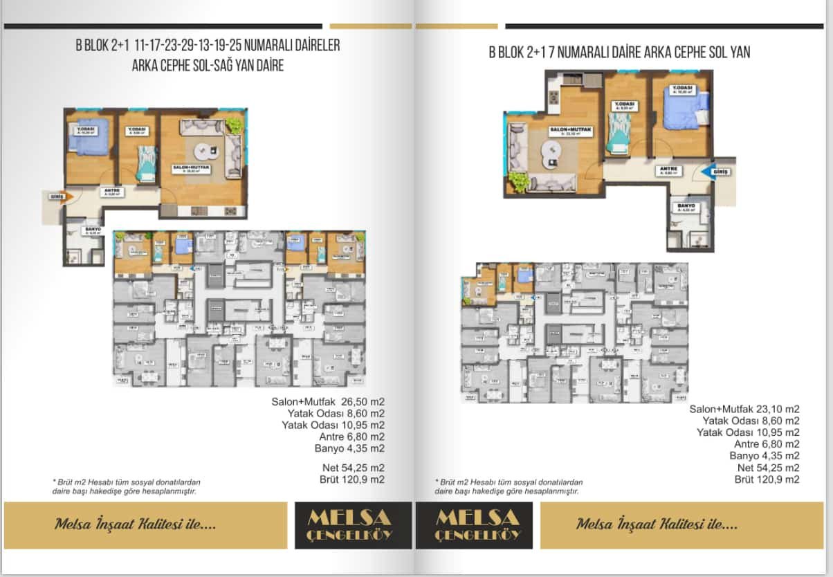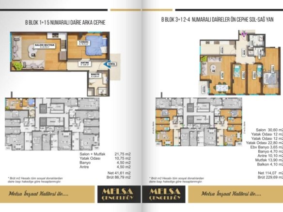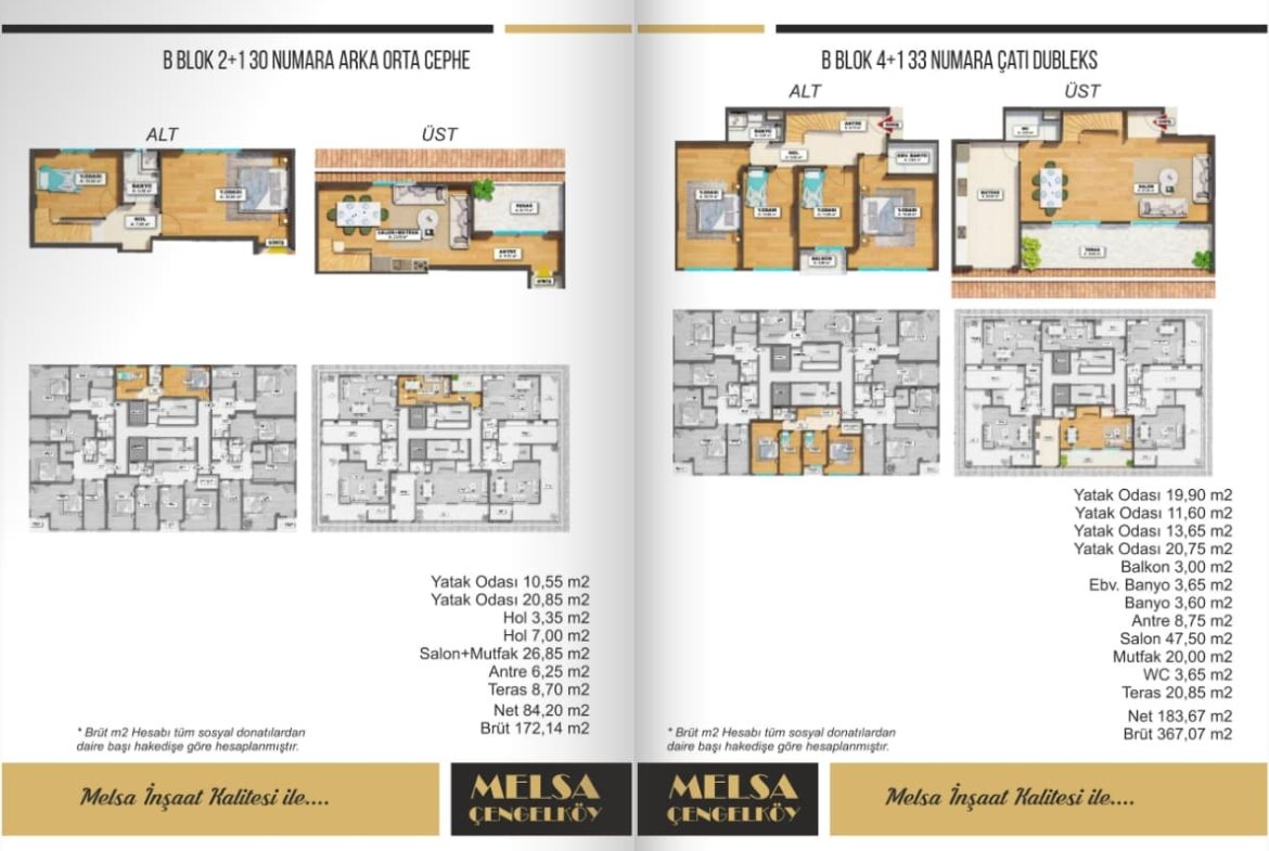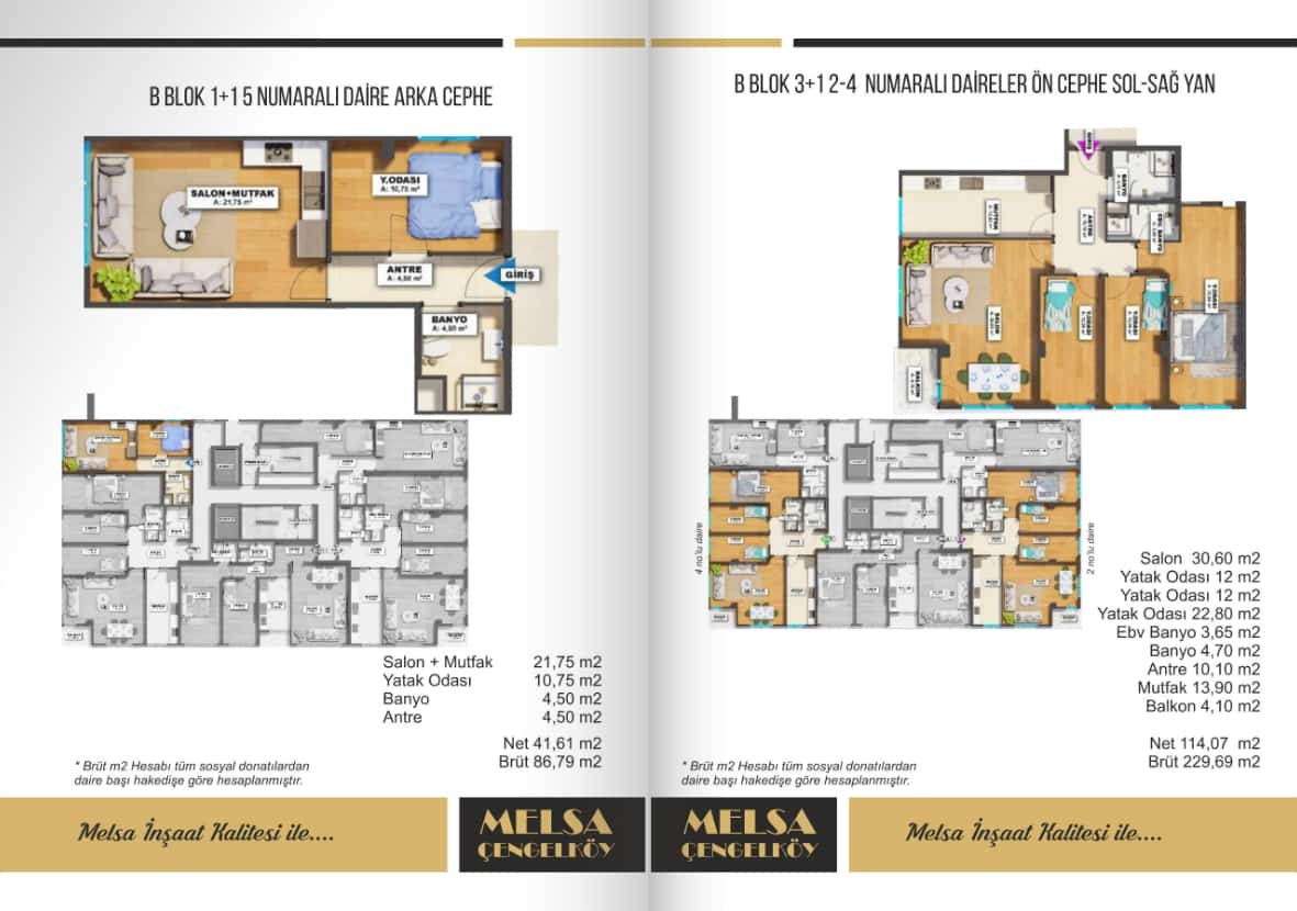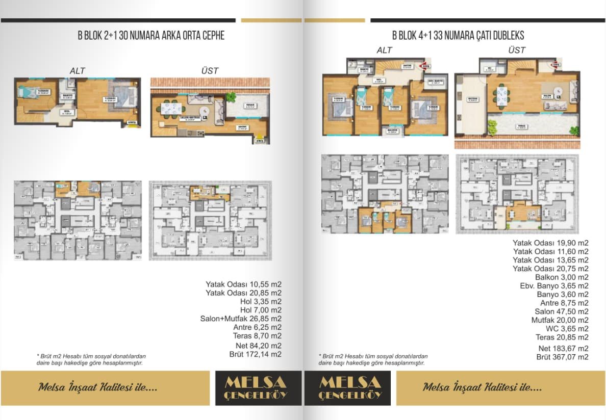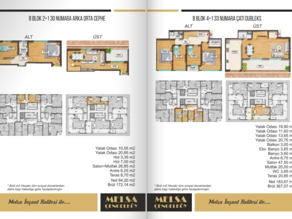 • 1+1, 2+1, 3+1, 4+1 ve dubleks daire seçenekleri